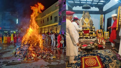 इंदौर। राजबाड़े पर शुभ मुहूर्त में होलकर परिवार के वंशजों ने पूजन पाठ कर परंपरा को निभाते हुए शुभ मुहूर्त पर होलिका दहन किया। इस अवसर पर ऑस्ट्रेलिया से पधारे