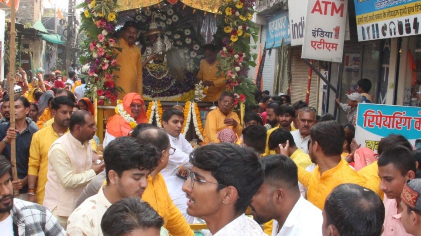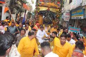 इंदौर (विनोद गोयल)। एबी रोड मालवीय नगर स्थित खाटू श्याम मंदिर के 23वें वार्षिकोत्सव के उपलक्ष्य में बसंत पंचमी पर मंदिर से शुक्रवार को सुबह खाटू श्याम बाबा की रथयात्रा का दिव्य आयोजन किया गया। यात्रा का समूचे मार्ग में श्याम भक्तों ने नाचते-गाते और झूमते हुए आत्मीय स्वागत किया। जगह-जगह पुष्प वर्षा के नजारे देखने को मिले। यात्रा में 251 महिलाएं मंगल कलश एवं 125 पुरुष रंग-बिरंगी श्याम ध्वजा लेकर नाचते-गाते झूमते रहे। महाकाल मंदिर उज्जैन की भस्म रमैया डमरू मंडली के सदस्य पूरे समय डमरू एवं झांज लिए चल रहे थे। हनुमानजी एवं शौर्य के प्रतीक देवी-देवताओं के अलावा भजन मंडली एवं गरबा मंडली के सदस्य भी आकर्षण का केन्द्र बने रहे। ढोल एवं ताशा पार्टी के भक्तों का उत्साह भी देखते ही बन रहा था। भक्तों के उत्साह ने समूचे मार्ग को श्याममय बना दिया। भक्तों के उत्साह का आलम यह था कि रथ यात्रा को 5 किमी की दूरी तय करने में 5 घंटे का समय लगा।
