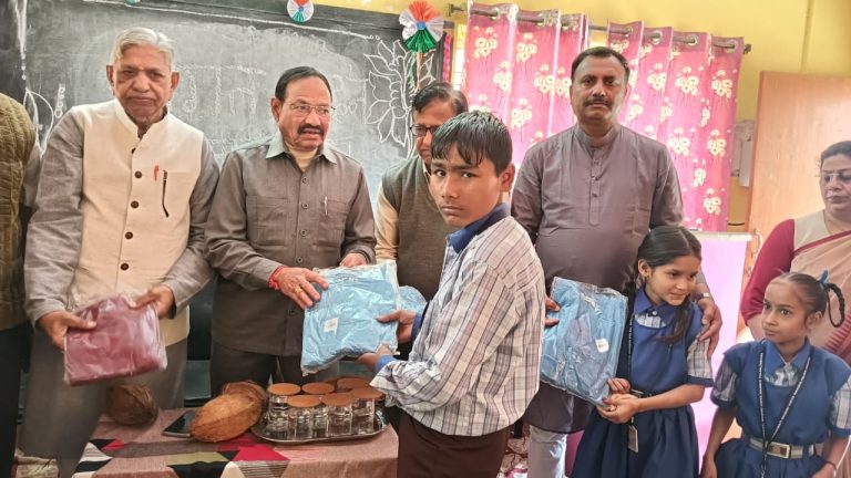 इंदौर(विनोद गोयल) पालदा स्थित सरस्वती शिशु विद्या मंदिर में मारुति नंदन बालाजी सेवा संसथान की ओर से पूर्व सांसद कृष्णमुरारी मोघे और समाजसेवी रामबाबू अग्रवाल के आतिथ्य में स्कूली बच्चों को ऊनी स्वेटर भेंट किए गए।