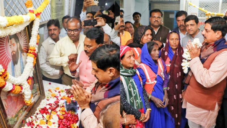 इंदौर । संत शिरोमणि श्री रविदास जी की जयंती के पावन अवसर पर किला मैदान स्थित जोनल कार्यालय परिसर में गरिमामय कार्यक्रम का आयोजन किया गया। कार्यक्रम में मुख्यमंत्री डॉ. मोहन यादव जी एवं महापौर पुष्यमित्र भार्गव द्वारा संत शिरोमणि श्री रविदास जी के चित्र पर माल्यार्पण* कर उन्हें श्रद्धांजलि अर्पित की गई।
