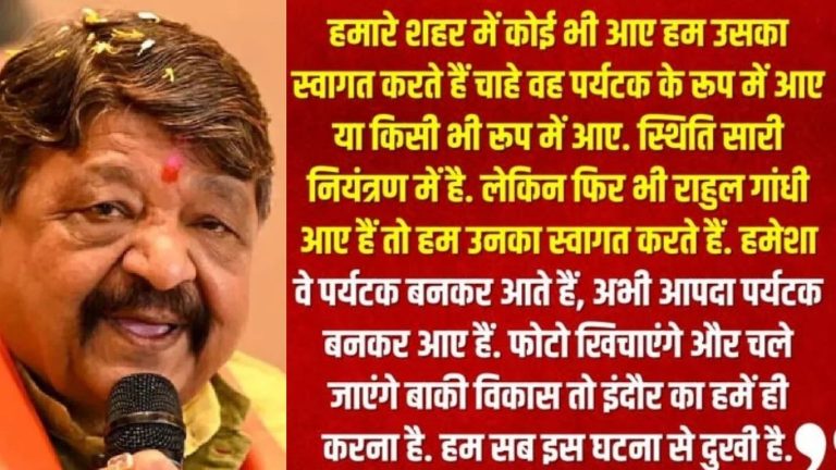 आपदा पर्यटक बनकर आए थे राहुल गांधी…मंत्री कैलाश विजयवर्गीय ने दी राहुल गांधी के इंदौर दौरे पर प्रतिक्रिया