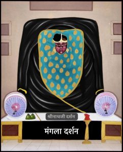साज – आज श्रीजी में श्याम रंग की धरती (आधार वस्त्र) पर श्वेत ज़री से गायों, बछड़ों के चित्रांकन वाली एवं श्वेत ज़री की लैस के हांशिया वाली पिछवाई धरायी जाती है. गादी, तकिया एवं चरणचौकी के ऊपर सफेद बिछावट की जाती है.