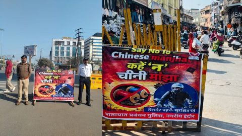 इंदौर ट्रैफिक पुलिस चेकिंग पॉइंट पर नो एंट्री पॉइंट व चौराहा पर बैनर लगा कर जनजागरूकता फैला रही है। अनाउंसमेंट कर प्रतिबंधित चाइनीज मांझे का उपयोग नही करने के लिए