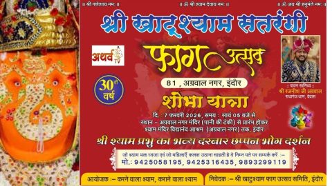 इंदौर(विनोद गोयल) श्री खाटू श्याम सतरंगी फाग उत्सव का आयोजन 7 फरवरी को होने वाला है इसकी व्यापक तैयारियां की गई है। यह फाग यात्रा इंदौर के अग्रवाल नगर से
