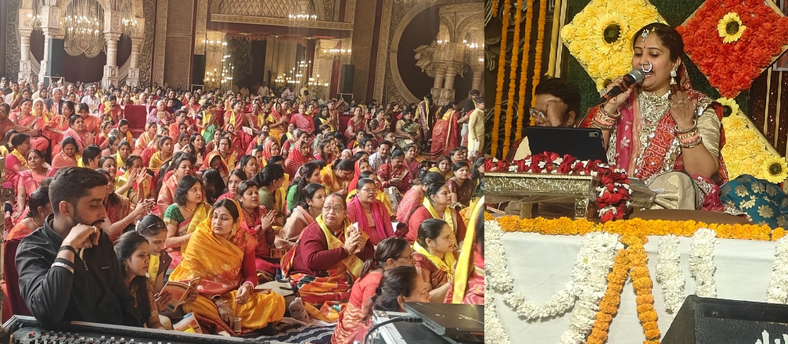 इंदौर में एबी रोड, राजीव गांधी चौराहा स्थित द मीरा गार्डन पर रविवार को हजारों साधकों ने अपनी आराध्या जीण माता के मंगल पाठ का दिव्य आयोजन तो किया ही, समूचे परिसर और मां के दरबार को इतने चित्ताकर्षक और मनोहारी स्वरूप में श्रृंगारित किया कि दर्शन करने पहुंचे लोग जहां के तहां थम गए। हजारों मोबाइल कैमरों ने इस मनोहारी श्रृंगार के मनभावन दृश्यों को कैद किया। मातारानी के दरबार की दिव्यता और भव्यता में 108 मीटर चुनरी और 108 मीटर गजरे ने भी चार चांद लगा दिए। काशी की बेटी के नाम से प्रख्यात वाराणसी से आई मंगल पाठ वाचिका श्रीमती पायल अग्रवाल ने भी अपनी मधुर प्रस्तुतियों से करीब छह घंटे तक इस उत्सव में आए मालवांचल के हजारों भक्तों को सम्मोहित बनाए रखा।